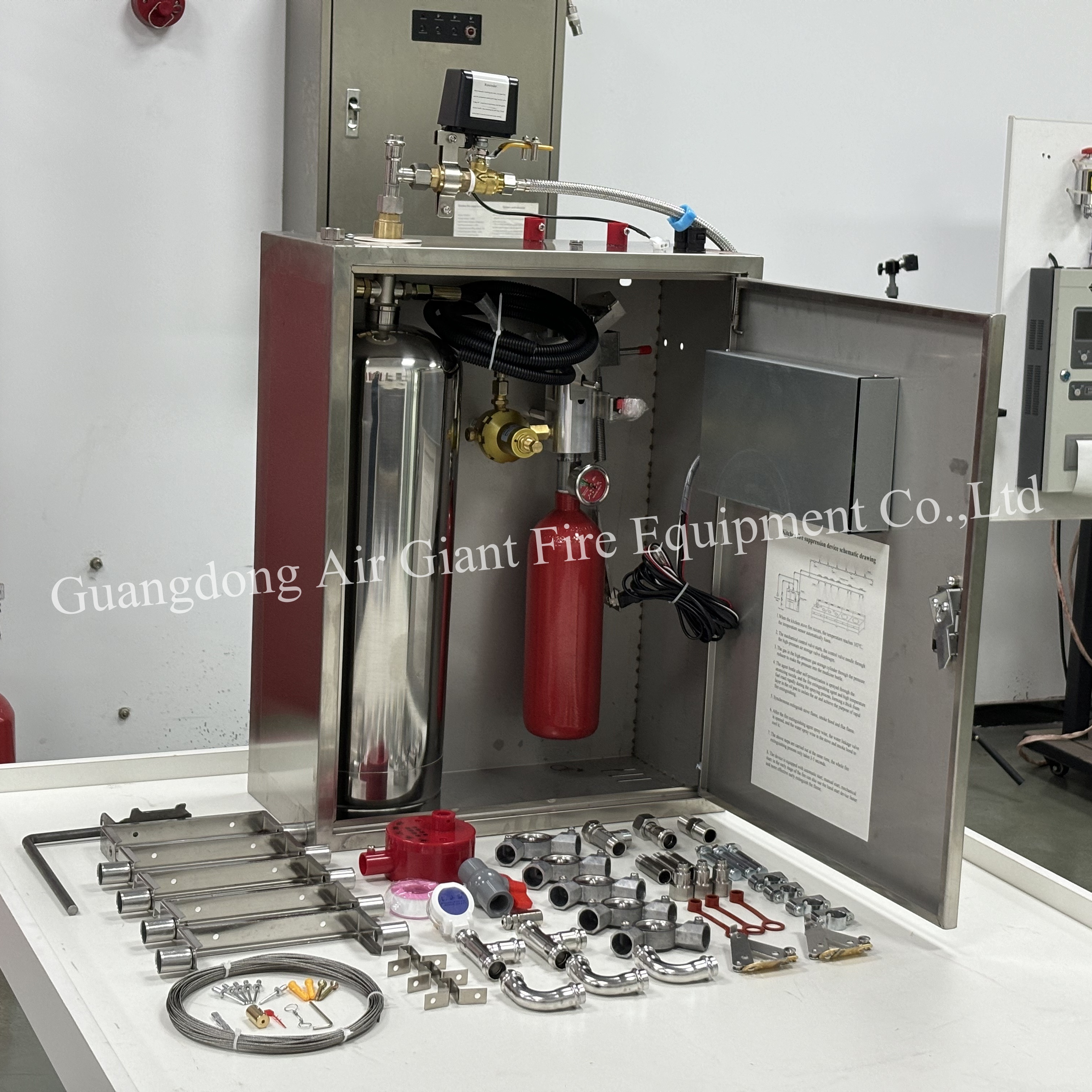 5。ノズル/スプレーパイプ: ストーブなどの高リスクの火災エリアに配置されています 火災源に対する抑制剤の均等な分布を確保するためのトップとレンジフード。