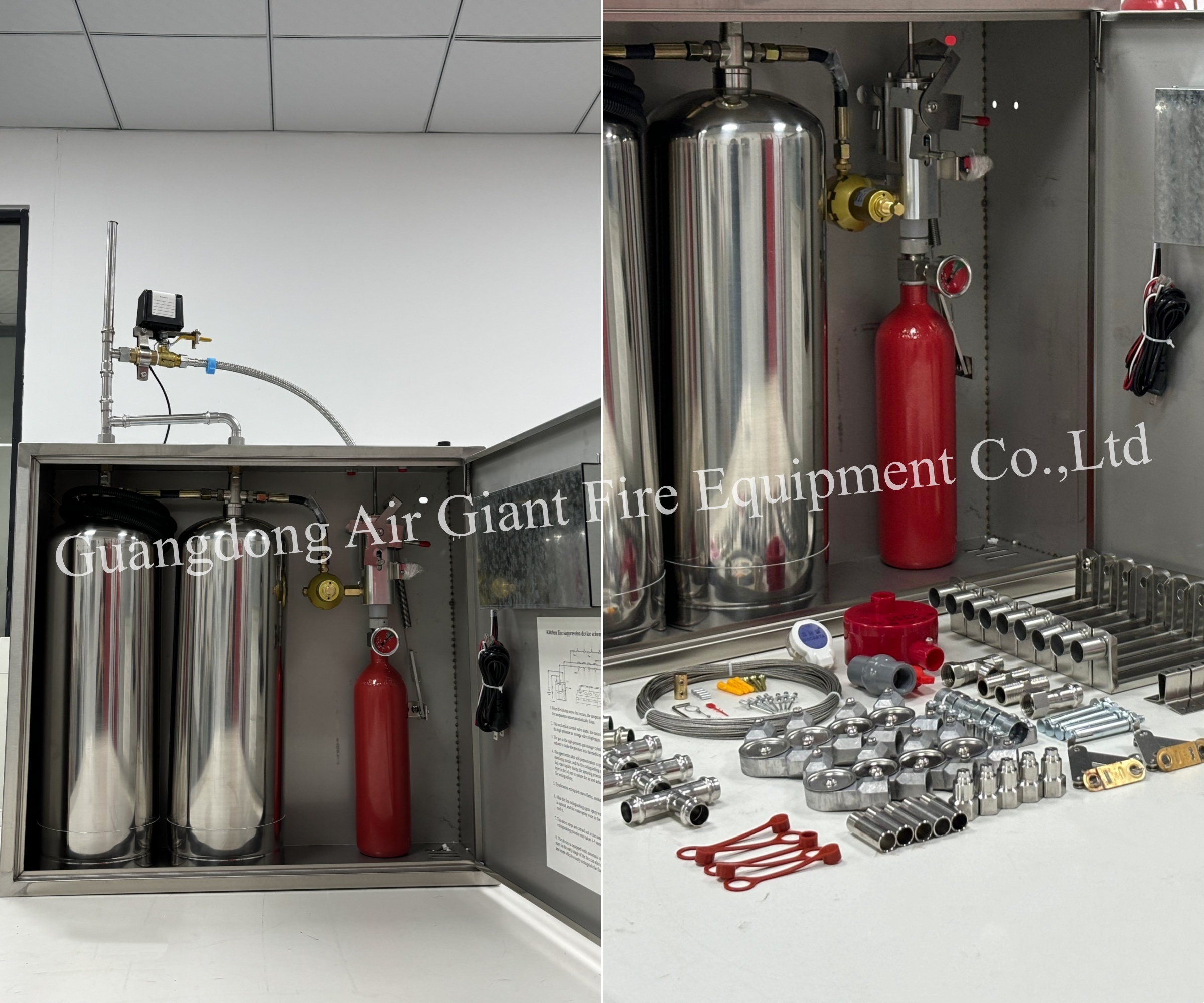 厨房機器消火装置は、工業用厨房、業務用厨房、民間厨房などの高湿度および高温環境に設置される次のような装置の完全なセットです。